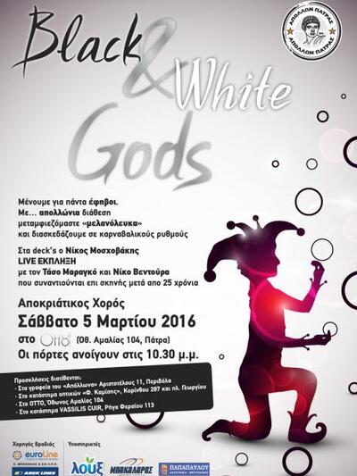 Ανεβάζει «στροφές» ο Απόλλωνας για τη μεγάλη βραδιά του Σαββάτου 5 Μαρτίου, οπότε και θα πραγματοποιηθεί στο ΟΤΤΟ (Όθωνος Αμαλίας 104) ο αποκριάτικος χορός «Black & White Gods».