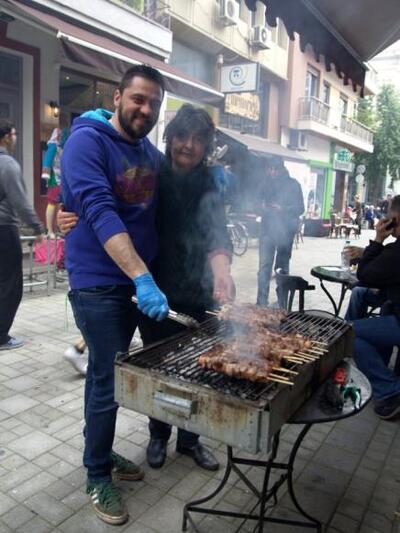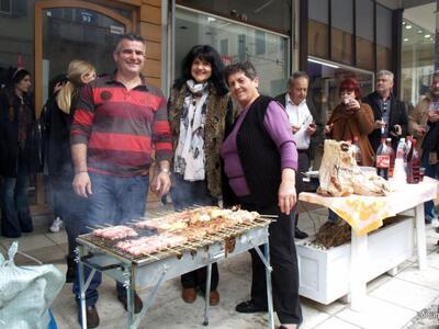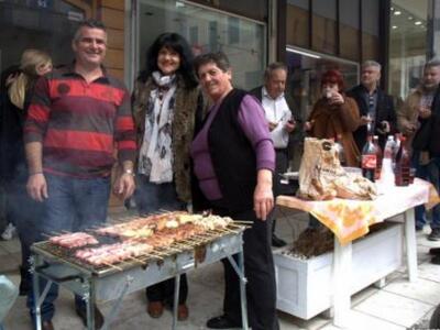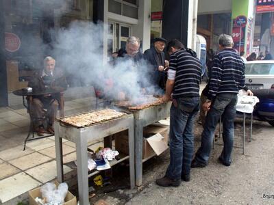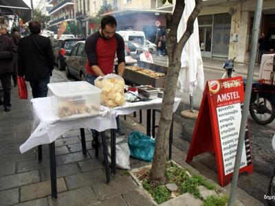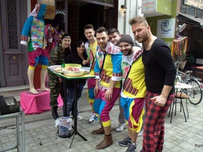 Εορταστική διάθεση επικρατεί από το πρωί στο κέντρο και στις γειτονιές της Πάτρας με μουσικές, κρασί και την τσίκνα από το ψήσιμο του κρέατος να διαχέεται παντού και τους Πατρινούς να αφήνουν για λίγο στην άκρη τα προβλήματα και να ζουν στους ξέφρενους ρυθμούς του καρναβαλιού.