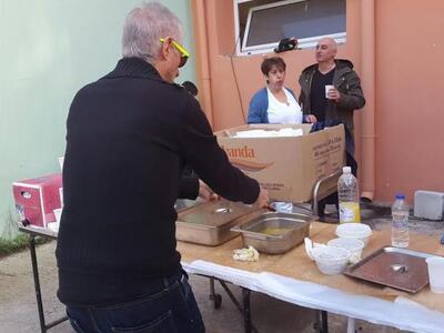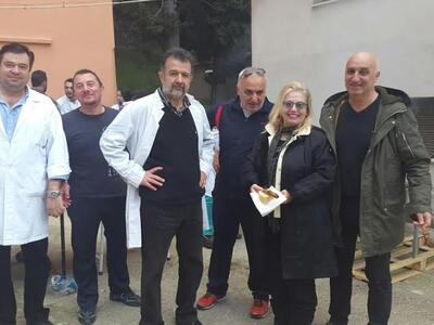 Από το πρωί στήθηκαν διακριτικά στην πίσω αυλή του Καραμανδανείου οι ψησταριές και άρχισε το τσίκνισμα εν μέσω αποκριάτικης ατμόσφαιρας, που ανέλαβαν ο Προιστάμενος Νοσηλευτικής Νώντας Καραίσκος και οι Νοσηλευτές Λάμπρος Χούτας και Πετρούτσος Γιάννης.