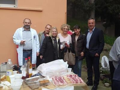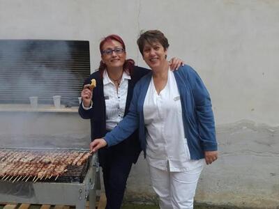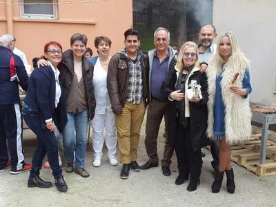 Οι ψησταριές στήθηκαν στην πίσω αυλή του νοσηλευτικού ιδρύματος και το κλίμα ήταν ιδιαίτερα γιορτινό