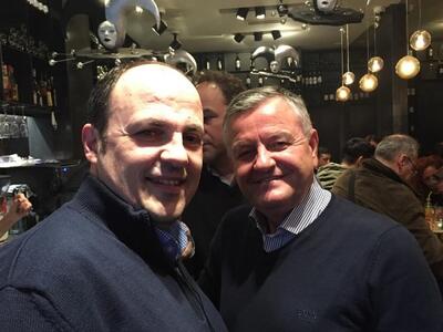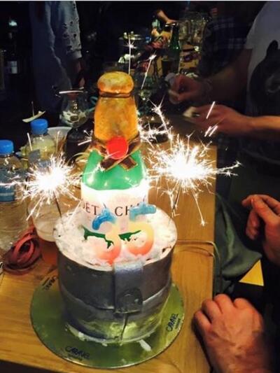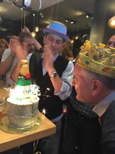 Στην καρδιά της Πάτρας, στον ανάστατο από το ατέλειωτο τσίκνισμα και την περατζάδα μεταμφιεσμένων και μη, πεζόδρομο της Ρήγα Φεραίου, γιόρτασε ανήμερα Τσικνοπέμπτη τα γενέθλιά του ο αγαπητός φίλος Αντώνης Κουνάβης των Minoan Lines.Ηταν ένα ανεπιτήδευτο μεσημεριανό κάλεσμα στο ολοκαίνουριο στέκι Chutney μεταξύ καλών φίλων, που φρόντισε η λαμπερή σύζυγός του Ηρώ, με πολύ κρασί, ποτό και άφθονα σουβλάκια λόγω της ημέρας. Δεν έλειψε η απαραίτητη τούρτα γενεθλίων που έκανε την έκπληξη ως ... «φτυστό» ομοίωμα σαμπάνιας, με «παραπλανητικά» κεράκια.