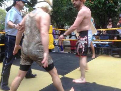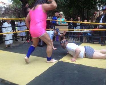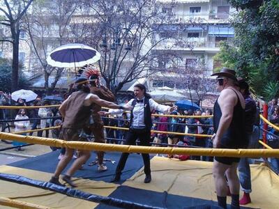 Το Καρναβαλικό Κομιτάτο αιφνιδίασε πολλούς στο κάτω μέρος της πλατείας Ολγας με ελεύθερη πάλη μέχρι τελικής πτώσεως. «Αν σου κατς» λεγόταν σατιρικά το καινούριο καρναβαλικό δρώμενο που συγκέντρωσε γρήγορα κοινό μετά τις 12 το πρωί. Διάφορα «κορμιά» με ...βίαια ένστικτα και ξεκαρδιστικές μεταμφιέσεις αγωνίστηκαν: Ο φοβερός Κεφαλοθραύστης, ο Μασκοφόρος Εκδικητής, ο Τούρκος ο Εκπορθητής, ο Αιμοδιψής Ινδιάνος κ.α τους οποίους υποδύθηκαν με περίσσιο αυτοσαρκασμό γνωστά μέλη και φίλοι του Κομιτάτου, μαζί με τον πρόεδρο Παντελή Πανή. Συμμετείχαν ως παλαιστές μεταξύ άλλων οι Χάρης Πανούτσος, Γιώργος Γκανασούλης, Γιώργος Ρόδης,Γιώργος Κυριακόπουλος, Κωνσταντίνος Μάγνης, Λυκούργος Σταυρουλόπουλος, Δημήτρης Τζελετόπουλος, Ολγα Σταυρουλοπούλου, Μαρία Αγουρίδη Μίλτος Παπλάς.Διαιτητές ήταν οι Τζούλια Ροδοπούλου, Τάσος Κουλουμπής, εκφωνητής ο Γκόγκος Παναγιωτόπουλος, αστραφτερή σέξι παρουσιάστρια ο Ντίνος Μπέλεχας και το μουσικό διάλειμα είχε αναλάβει ο Γιάννης Γιαννακόπουλος.