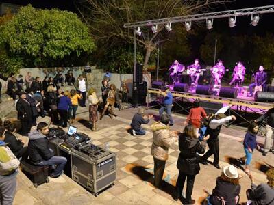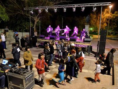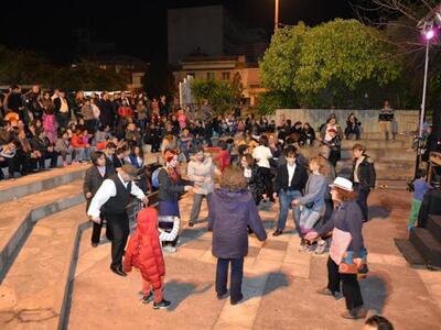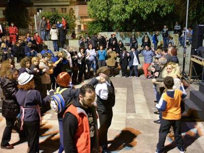 Στη συνέχεια στην πλατεία Ελευθερίας πραγματοποιήθηκε Αποκριάτικη Γιορτή, με μουσική και χορό, όπου πενταμελές σχήμα αποτελούμενο από τους μουσικούς Αλέξανδρο Πώχο (ακορντεόν-τραγούδι), Ανδρέα Γκολφινόπουλο (μπουζούκι-τραγούδι), Μιχάλη Ατσάλη (κιθάρα-τραγούδι), Διονυσία Ντρουβαρη (τραγούδι) και Άκη Χατζημικέ (κρουστά: καχόν-τουμπερλέκι) παρουσίασε ένα εκλεκτό γεμάτο κέφι δίωρο πρόγραμμα με ρεπερτόριο από κορυφαίες στιγμές του λαϊκού και ρεμπέτικου τραγουδιού, που εγγυάται γνήσια διασκέδαση στον κόσμο.