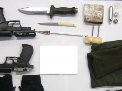 Στο σπίτι του 21χρονου βρέθηκαν και κατασχέθηκαν ένα αεροβόλο πιστόλι, ένα μαχαίρι, δύο μεταλλικά βυκία, μία αμπούλα αερίου, μια χειροποίητη λαβή με προσαρμοσμένα επ’ αυτής δύο μεταλλικά καρφιά, ένα αυτοσχέδιο βέλος. τρία πλαστικά δοχεία χωρητικότητας 4 λίτρων έκαστο, κενά περιεχομένου.