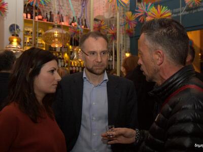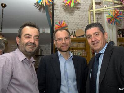 Το "παρών" έδωσαν μεταξύ άλλων: Ο Περιφερειάρχης Απόστολος Κατσιφάρας, οι αντιπεριφερειάρχες Γρηγόρης Αλεξόπουλος και Γιώργος Αγγελόπουλος, ο Θόδωρος Δούρος της Dur, ο Σπύρος Σκιαδαρέσης της ομώνυμης λουκουμοποίας, ο Χρήστος Κολυπέρας της οινοποιίας, ο Γιώργος και η Χαρά Λουκάτου της ποτοποίας, ο Κώστας Αντωνακόπουλος της μπύρας "Διώνη", ο πρόεδρος του συλλόγου κατστηματαρχών Εστίασης Γιώργος Κοτοπούλης, ο καθηγητής ιατρικής πανεπιστημίου Πατρών Λάμπης Γώγος, ο Θανάσης Κούστας του Επιμελητηρίου Αχαΐας, ο Γιώργος Καραγεωργόπουλος της plus media, ο Αντρέας Τσιλίρας των εκδόσεων "Τέταρτο", ο Τρύφωνας Παχής του "Ionian", η έμπορος Νατάσα Μπιλάλη, τα ζεύγη Μάρυς και Γιώργου Ανδρουτσέλη, Νίκου και Ιωάννας Βασιλείου, η δημοτική σύμβουλος Βίβιαν Σαμούρη, οι π. αντιδήμαρχοι Αλέξης Σκαρμέας, Νανά Πατρώνη, επιχειρηματίες από τον χώρο της εστίασης και αναψυχής, δημοσιογράφοι κ.α.