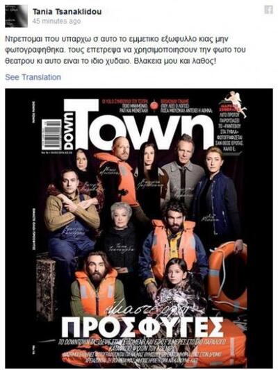 «Ντρέπομαι που υπάρχω σ' αυτό το εμετικό εξώφυλλο κι ας μην φωτογραφήθηκα. Τους επέτρεψα να χρησιμοποιήσουν τη φώτο του θεάτρου και αυτό είναι το ίδιο χυδαίο. Βλακεία μου λάθος!».