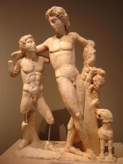 *Στη φωτογραφία εικονίζεται σύμπλεγμα Διονύσου και σατύρου, Ρωμαϊκής περιόδου από την Πάτρα. Αρχαιολογικό Μουσείο Πάτρας (φωτ. αρχείο Ν. Παλαιολόγου).