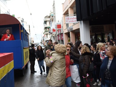 Σε μια καρναβαλική Πάτρα, που ντόπιοι και επισκέπτες με χαρούμενη διάθεση, πλατιά χαμόγελα και την αδημονία τους να κορυφώνεται για τη νυχτερινή παρέλαση του Σαββάτου, ο σοκολατοπόλεμος έκανε δυναμική την παρουσία του στο σαββατιάτικο μεσημέρι.