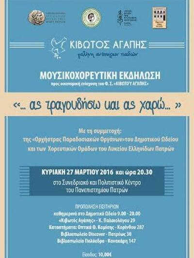 Η μουσικοχορευτική παράσταση θα πραγματοποιηθεί την Κυριακή 27 Μαρτίου 2016 στο Συνεδριακό και Πολιτιστικό Κέντρο του Πανεπιστημίου Πατρών στις 8.30 το βράδυ.