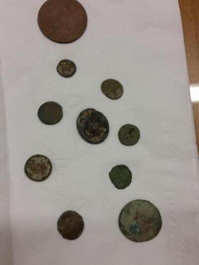 Οι αστυνομικοί βρήκαν στο εσωτερικό των οχημάτων και κατέσχεσαν, τρεις ανιχνευτές μετάλλων, σκαπτικά εργαλεία και τα παρακάτω αρχαία νομίσματα: