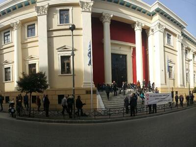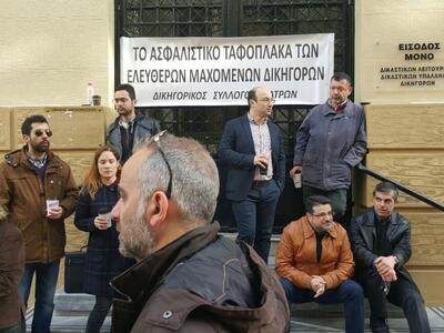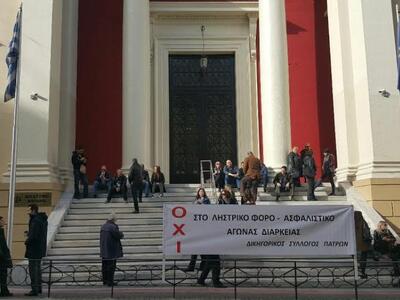 09.05 Σε εξέλιξη βρίσκεται από νωρίς το πρωί ο αποκλεισμός του Δικαστικού Μεγάρου, από δικηγόρους και με πρωτοβουλία του Δικηγορικού Συλλόγου Πατρών, ο οποίος συνεχίζει τις κινητοποιήσεις ενάντια στο ασφαλιστικό, ΔΕΙΤΕ ΦΩΤΟ.