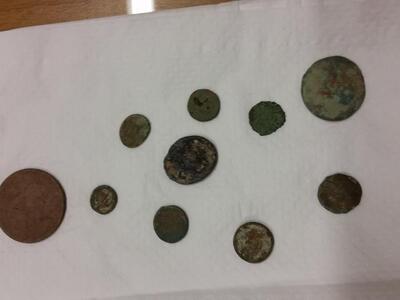 Οι αστυνομικοί βρήκαν στο εσωτερικό των οχημάτων και κατέσχεσαν, τρεις ανιχνευτές μετάλλων, σκαπτικά εργαλεία και τα παρακάτω αρχαία νομίσματα: