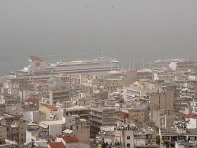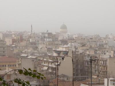 Αποπνικτική είναι η ατμόσφαιρα από το πρωί της Τετάρτης στην Πάτρα, καθώς η σκόνη από την Αφρική έχει δημιουργήσει ένα πυκνό νέφος, καλύπτοντας τον ήλιο και την ορατότητα, όπως φαίνεται και στις φωτογραφίες.