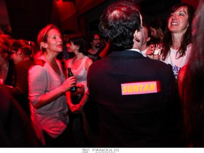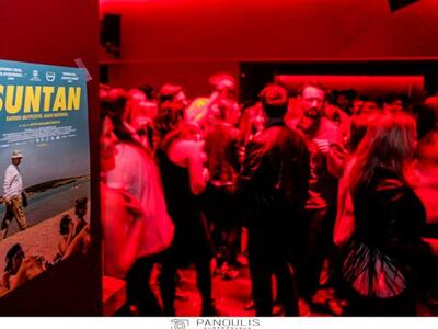 Έχοντας μόλις επιστρέψει από τις Η.Π.Α., όπου το «Suntan» προβλήθηκε στο πλαίσιο του περίφημου φεστιβάλ South by Southwest στο Austin, ο Αργύρης Παπαδημητρόπουλος («Bank Bang», «Wasted Youth») και οι συντελεστές της ταινίας υποδέχθηκαν τους καλεσμένους θεατές και συναδέλφους τους από τον καλλιτεχνικό χώρο για να τους παρουσιάσουν σε πρώτη προβολή το γεμάτο ήλιο και σασπένς ερωτικό θρίλερ, με πρωταγωνιστή τον γνωστό ηθοποιό Μάκη Παπαδημητρίου. Μετά την προβολή, η οποία χειροκροτήθηκε με ενθουσιασμό από τους θεατές, ακολούθησε πάρτι στο six d.o.g.s, στο Μοναστηράκι.