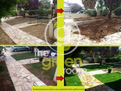Υλοποιούμε πάσης φύσεως έργα πρασίνου, χρησιμοποιώντας αρμονικά τόσο φυτικό υλικό όσο και δομημένο (πλακοστρώσεις, διακοσμητικό χαλίκι, σταθερές κατασκευές, πέργκολες, φράκτες , οριοθέτηση παρτεριών κτλ).