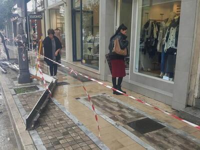 Το περιστατικό σημειώθηκε τις πρώτες πρωινές ώρες. Μια τεράστια υδρορροή ξεκόλλησε από διατηρητέο κτίριο και από την οροφή εμπορικού καταστήματος με αποτέλεσμα να στέκει μετέωρη πάνω από τα κεφάλια των περαστικών από το πεζοδρόμιο της οδού Μαιζώνος. Στο σημείο κλήθηκε γερανοφόρο όχημα του δήμου Πατρέων για να ξηλώσει την ετοιμόρροπη υδρορροή από την οροφή του καταστήματος.