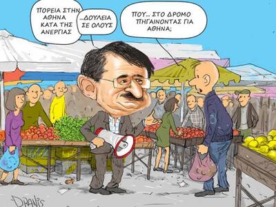 Ο Κώστας Πελετίδης με τη... ντουντούκα του καλεί σε συμμετοχή στην πορεία για την ανεργία με το πενάκι του Dranis