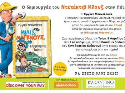Το βιβλιοπωλείο Discover your Way (Πατρέως 30) γιορτάζει την παγκόσμια ημέρα παιδικού βιβλίου με έναν ξεχωριστό καλεσμένο. Ο Γίργκεν Μπανσέρους, ο «πατέρας» του αγαπημένου ήρωα, ντεντέκτιβ Κλουζ, έρχεται για μια μοναδική εμφάνιση στην Πάτρα και μαζί του φέρνει όχι μόνο τα τελευταία νέα του Κλουζ αλλά και τους δυο καινούργιους του φίλους, τη Μίλι και τον Μάγκνους.