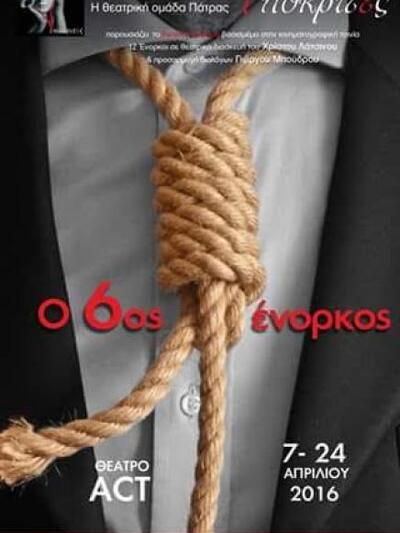 Όλα αυτά θα συμβούν στην ήδη πολυαναμενόμενη νέα θεατρική παράσταση της ερασιτεχνικής θεατρικής ομάδας της Πάτρας, «Υποκριτές» με τίτλο «Ο 6ος Ένορκος». Η παράσταση σε σκηνοθεσία του Μίλτου Παπλά, ο οποίος παίζει επίσης (μεταξύ των ηθοποιών θα δούμε και τον Πατρινό νομικό και βουλευτή του «Ποταμιού» Ιάσονα Φωτήλα) θα ξεκινήσει την Πέμπτη 7 Απριλίου και θα συνεχιστεί έως και την Κυριακή των Βαίων 24 Απριλίου 2016. Στο μεταξύ η ομάδα Υποκριτές συμπληρώνει 5 χρόνια ζωής και προσφοράς στο ερασιτεχνικό θέατρο και προσκαλεί το κοινό αυτή την Πέμπτη 31 Μαρτίου 2016, στο θέατρο Act, σε μία ξεχωριστή βραδιά αναμνήσεων αλλά και παρουσίασης μελλοντικών στόχων.