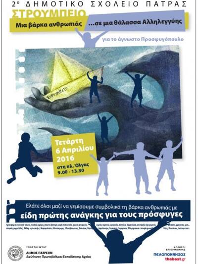 Συλλογή ειδών πρώτης ανάγκης ,για τα μικρά προσφυγόπουλα που βρίσκονται στην χώρας μας, θα πραγματοποιηθεί στην πλατεία Όλγας της Πάτρας, από το Στρούμπειο Δημοτικό Σχολείο.