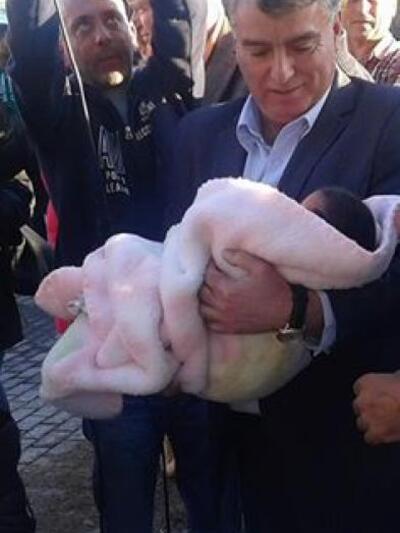 Με ένα μωρό στην αγκαλιά, ο Σύρος Δήμαρχος Κυλλήνης- Ανδραβίδας Ναμπίλ Μοράντ. Εδώ στην υποδοχή προσφύγων πριν λίγο στην Μυρσίνη Ηλείας. Την φωτογραφία ανέβασε στο fb ο δημοσιογράφος Κωνσταντίνος Διονυσόπουλος.