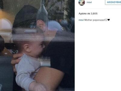 Σε ρόλο παπαράτσι απαθανάτισε τον σύζυγό της να κρατά στην αγκαλιά του το ένα από τα δίδυμα παιδιά τους κατά τη διάρκεια απογευματινής τους εξόδου. Μάλιστα, η φωτογραφία ήταν έξω από τη τζαμαρία και η ίδια σημείωσε: «Mother paparazzo!».