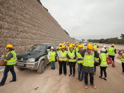 Η ξενάγηση στα πεδία κατασκευής (Τοίχοι αντιστήριξης με σαρζανέτια και δενδροφύτευση, Σήραγγα Παναγοπούλας Τ24 μήκους 530μ., Κόμβος Ρίου) έγιναν από τους κ.κ. Απόστολο Μεσμπούρη, Γεωλόγο και Γιώργο Καλλιάνη, Περιβαλλοντολόγο από το εργοτάξιο του Αιγίου, και τον κ. Άρη Φακίνο, Μηχανικό, Επικεφαλής του εργοταξίου του Δρεπάνου.