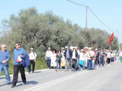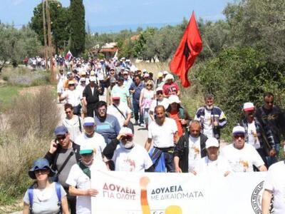 Στην Ακράτα, που είναι και ο τελευταίος σταθμός για τη Δευτέρα 4 Απρίλη, έφτασε το απόγευμα η πορεία Πάτρα - Αθήνα ενάντια στην ανεργία.