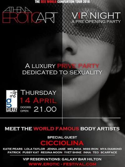 Το αλλοτινό σύμβολο του σεξ, Cicciolina, η οποία μάλιστα είχε βγει και βουλευτής στην γειτονική Ιταλία αναμένεται να έρθει στην Αθήνα ως γκεστ καλεσμένη στο Erotic Art Festival 2016 που θα γίνει στο ΤΑΕ ΚWON DO, στο Φάληρο, το διάστημα 15-18 Απριλίου 2016.