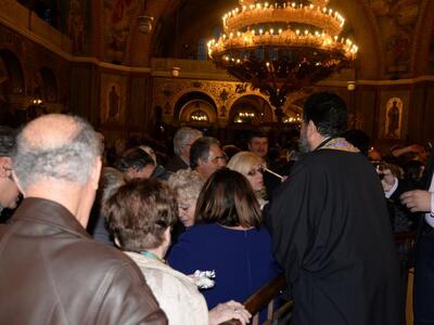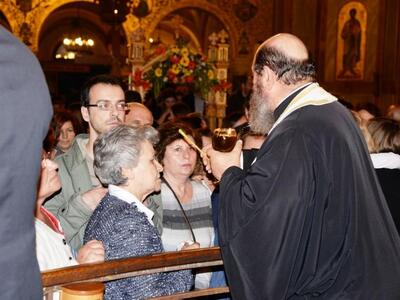 «Συνεχίζεται ἀπό πλήθη πιστῶν, τό προσκύνημα τῶν ἱερῶν καί χαριτοβρύτων Λειψάνων τοῦ Ἁγίου Λουκᾶ Ἀρχιεπισκόπου Συμφερουπόλεως τοῦ Θαυματουργοῦ, πού κατ’ αὐτάς τάς ἡμέρας εὑρίσκονται στόν Ἱερό Ναό τοῦ Ἁγίου Ἀποστόλου Ἀνδρέου.