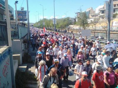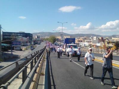 Στις 3 το μεσημέρι, η πορεία ξεκίνησε από το Χαϊδάρι, με προορισμό το Σύνταγμα, για το μεγάλο συλλαλητήριο".