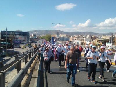 Επίσης από τον Ασπρόπυργο, μπήκαν στην πορεία εκατοντάδες μέλη φορέων, συνδικάτων, εργατικών σωματείων και αθλητικών συλλόγων, που ήρθαν από την Πάτρα, να λάβουν μέρος στην πεζοπορία μέχρι το Σύνταγμα.