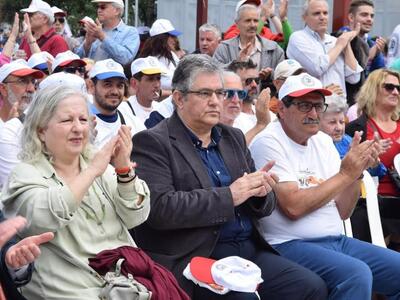 Παρών και ο Γενικός Γραμματέας της Κ.Ε. του ΚΚΕ Δημήτρης Κουτσουμπας που υποδέχθηκε με κόκκινα γαρύφαλα τον κ. Πελετίδη.