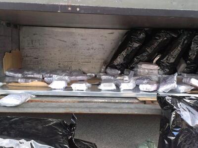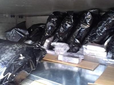 Συγκεκριμένα, κατά τη διάρκεια ελέγχου που πραγματοποιήθηκε, απογευματινές ώρες της 10/04/16, στο νότιο λιμένα Πατρών από στελέχη της Περιφερειακής Ομάδας Δίωξης Ναρκωτικών (ΠΟΔΙΝ) του Κεντρικού Λιμεναρχείου Πάτρας, σε ψυγείο Φ/Γ όχημα με επικαθήμενο, το οποίο είχε εκφορτωθεί από Ε/Γ-Ο/Γ πλοίο προερχόμενο από λιμένα εξωτερικού, και μετά από ένδειξη αστυνομικού σκύλου ανίχνευσης ναρκωτικών ουσιών Λ.Σ.-ΕΛ.ΑΚΤ., εντοπίστηκαν επιμελώς κρυμμένα σε ειδικά διαμορφωμένη κρύπτη ανάμεσα των πλαϊνών παλετοθηκών του ανωτέρω επικαθήμενου τα εξής:
