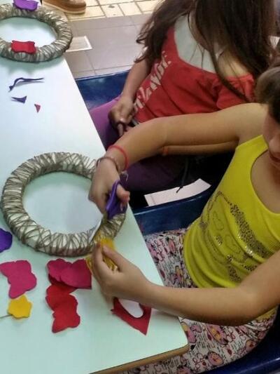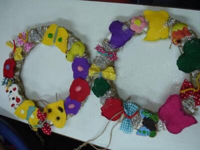Μέσα στις πολύχρωμες αίθουσες και σ' ένα πραγματικά φιλικό και ευχάριστο περιβάλλον, οι μικροί καλλιτέχνες, με φαντασία και μεράκι δημιούργησαν όμορφα στεφάνια. Υφάσματα, φυσικός σπάγκος, τσόχα, πηλός, γύψος ήταν μερικά από τα υλικά που χρησιμοποιήθηκαν για να διακοσμήσουν τα στεφάνια σε διάφορες ανοιξιάτικες αποχρώσεις.