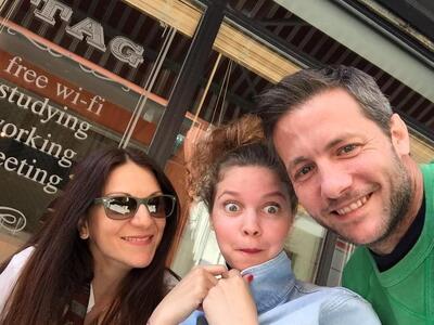 Η Πατρινή Λίλα Μπακλέση ήπιε τον καφέ της στο Τag την Δευτέρα 25 Απριλίου. Μαζί της και ο ιδιοκτήτης της καφετέριας, Θάνος Δούρος.