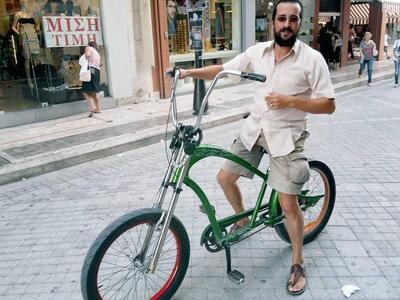 Ο Τάσος Νούσιας έκανε με το ποδήλατο του Πατρινού σκηνοθέτη Ανδρέα Λαμπρόπουλου μια βόλτα στο πεζόδρομο της ρήγα Φεραίου το Σάββατο 23 Απριλίου.