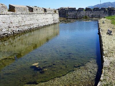 Απαράδεκτη είναι το τελευταίο διάστημα η κατάσταση που επικρατεί στην τάφρο που περιβάλει το Κάστρο του Ρίου. Η δίοδος που επιτρέπει στη θάλασσα να μπαίνει στην τάφρο και να ανανεώνει τα νερά της έχει κλείσει από φερτά υλικά με αποτέλεσμα η στάθμη των υδάτων νε πέφτει διαρκώς και τα όσα έχουν απομείνει να έχουν μετατρέψει την τάφρο σε βούρκο.