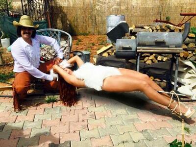 Όπως βλέπετε, σουβλίζει, όπως απαιτεί το έθιμο και γράφει στη λεζάντα του: «ΧΡΙΣΤΟΣ ΑΝΕΣΤΗ ρέι. Χρόνια πολλά και του χρόνου περισσότερα τσικάκια!!!».