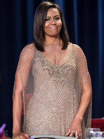 Με couture Givenchy δημιουργία γοήτευσε η Μισέλ Ομπάμα που ως γνήσιο fashion icon έχει για τα καλά ξεφύγει από τη συμβατική γκαρνταρόμπα της «πρώτης κυρίας». H μπεζ τουαλέτα της είχε εξωτερικά έναν ολοκέντητο, διάφανο τούλινο μανδύα κεντημένο με κρύσταλλα.
