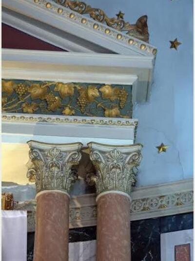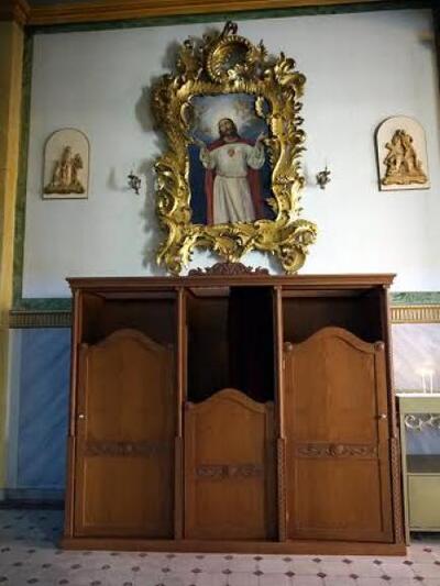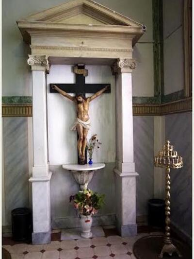 Εντός του ναού υπάρχουν δύο παρεκκλήσια. Αριστερά του Αγίου Ιωσήφ και δεξιά της Παναγίας της Πονεμένης, τα οποία κοσμούν έργα του Βαρούχα του 1920 και του 1925 αντίστοιχα.