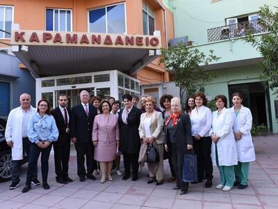 Νωρίτερα τη Δευτέρα επισκέφθηκαν το Καραμανδάνειο Νοσοκομείο Παίδων για να μοιράσουν δώρα στους μικρούς ασθενείς. Εκεί δυστυχώς η πριγκίπισσα διαπίστωσε η ίδια την κακή κατάσταση του κτιρίου και τις ελείψεις σε εξοπλισμό. (Στην ουσία σοκαρίστηκε και οργίστηκε με την όλη εικόνα καλώντας τους πολίτες επιτέλους να «κάνουν κάτι», ενώ σχολίασε πως πρέπει να κινητοποιηθεί και κόσμος που ζει και έχει προκόψει στο εξωτερικό).Υποσχέθηκε ότι θα επιστρέψει και πάλι στην Πάτρα με «γεμάτα τα χέρια», ενώ δεσμεύτηκε να παραχωρήσει άμεσα δυο καθοριστικά μηχανήματα. Δεν παρέλειψε βέβαια να ευχαριστήσει την αν. διοικήτρια Κατερίνα Γατοπούλου και το προσωπικό του Νοσοκομείου για τη θερμή υποδοχή.