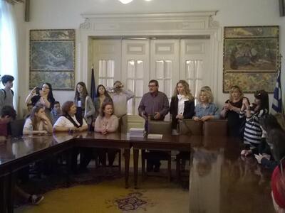 Τον Δήμαρχο Πατρέων Κώστα Πελετίδη συνάντησαν σήμερα το πρωί στο Δημαρχείο, μαθητές και εκπαιδευτικοί του Γυμνασίου από το Πειραματικό Σχολείο του Πανεπιστημίου Πατρών, μαζί με άλλους μαθητές και εκπαιδευτικούς, 85 συνολικά, από Αυστρία, Ουγγαρία, Γερμανία, Φινλανδία, Ιταλία και Πολωνία.