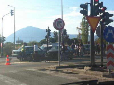 Σφοδρή σύγκρουση δύο αυτοκινήτων έγινε νωρίτερα σήμερα το απόγευμα στην περιοχή των Μποζαιτίκων, στη διασταύρωση των οδών Πανεπιστημίου και Διοδώρου. Από τη σύγκρουση το ένα αυτοκίνητο καβάλησε το διαχωριστικό διάζωμα και χτύπησε με δύναμη στον φωτεινό σηματοδότη, μπρος στα μάτια των έκπληκτων περαστικών.