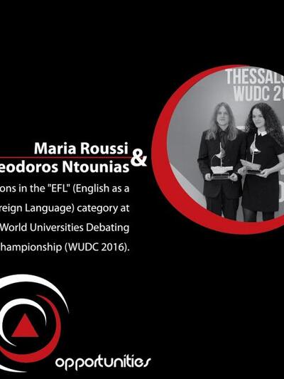 Θα τον διαδεχτούν στη σκηνή η Μαρία Ρούση και ο Θοδωρής Ντουνιάς, δύο δεινοί ρήτορες της εποχής μας που μέσα από ένα ζωντανό debate θα δώσουν στο κοινό του TEDxPatras την «ευκαιρία» να συνειδητοποιήσει πως δεν υπάρχει μία απόλυτη αλήθεια μα πολλές, διαφορετικές και συχνά αντικρουόμενες. Είναι το ελληνικό δίδυμο που κέρδισε, πρόσφατα, το Παγκόσμιο Πανεπιστημιακό Πρωτάθλημα Ρητορικής, στην κατηγορία «ΕFL» (Αγγλικά ως ξένη γλώσσα).