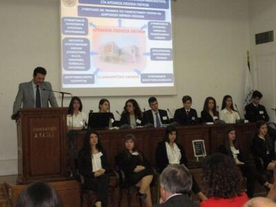 Ακολούθως, οι μαθητές τού Αρσακείου Λυκείου Βαζάκας Αλέξανδρος, Γεωργιοπούλου Δήμητρα, Γιαπιτζή – Παπανδρέου Άννα, Καλαμάρα Άννα – Μαρία, Κατσιμπέρη Ελισσάβετ, Λιανού Μαρία, Λουκοπούλου Χριστίνα, Μαρούδα Αλεξάνδρα, Παπαλεξοπούλου Ελπίδα, Πατριαρχέα Μόνικα, Πετρόπουλος Ιάσονας, Πολίτη Αγγελική, Σώζος Γεώργιος και Φλισκανόπουλος Θεόδωρος παρουσίασαν με έναν εξαιρετικό βιωματικό τρόπο την εικονική εταιρεία παραγωγής και εμπορίας προϊόντων ελιάς, OLEV, ενώ έκαναν και μιαν επίδειξη τού καινοτόμου Ρομπότ – Βοηθού Πωλήσεων, που κατασκεύασαν για τις ανάγκες τού Προγράμματος. Τον Συντονισμό είχε η Υπάλληλος τής Εθνικής Τράπεζας – Σύμβουλος τού Προγράμματος κ. Χριστίνα Ταβλά.