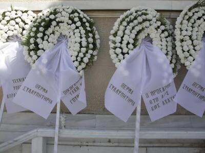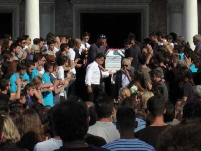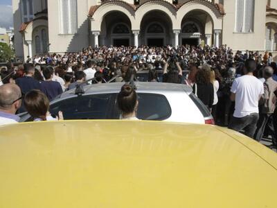 Εκατοντάδες νέα παιδιά, συμμαθητές και συμπαίκτες του στο ποδόσφαιρό, τον αποχαιρετούν με δάκρυα στα μάτια και ένα μεγάλο γιατί ζωγραφισμένο στο πρόσωπό τους. Ντυμένοι με τις φανέλες της Θύελλας Πατρών, οι συμπαίκτες του τον συνοδεύουν στην τελευταία του κατοικία, ενώ πολλοί από φίλους και συγγενείς φορούν λευκά όπως ζήτησε η μητέρα του..Το φέρετρο ήταν σκεπασμένο με σημαία του Ολυμπιακού.