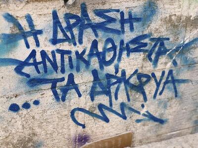 Ολοένα και πιο τολμηρό το πρόγραμμα του Νέου Αρχαιολογικού Μουσείου στην εθνική οδό, που φαίνεται πλέον να προτείνει εκθέσεις, που ταιριάζουν στη νεωτεριστική όψη του κτιρίου του. Ως τις 13 Ιουνίου, μπορείτε να το διαπιστώσετε, αν επισκεφθείτε την έκθεση με τίτλο «Τετράδια των δρόμων. Τα συνθήματα και τα graffiti των Εξαρχείων». Με progressive, αντισυμβατικό στήσιμο, παρουσιάζονται φωτογραφίες από τους τοίχους και τους δρόμους της πιο "ανήσυχης" και ταραχώδους γειτονιάς της Αθήνας, που αποτυπώνουν εύγλωττα τις αγωνίες της νεοελληνικής πραγματικότητας.