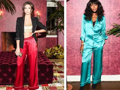Το λεγόμενο sleepwear δεν περιορίζεται στα φορέματα που παραπέμπουν σε νυχτικά και μισοφόρια. Η διεθνής μόδα υποκλίνεται στις παραδοσιακές πυζάμες, με το γνώριμο κουμπωτό άνω μέρος και το ρευστό παντελόνι, υιοθετώντας άνθινα εμπριμέ ή γυαλιστερές μονοχρωμίες με το καθιερωμένο γαρνίρισμα. Ανοιξη και καλοκαίρι είναι μέγα «must» τέτοια σύνολα, που γέμισαν πασαρέλες, red capet αλλά και street style στις πιο in fashion μητροπόλεις.