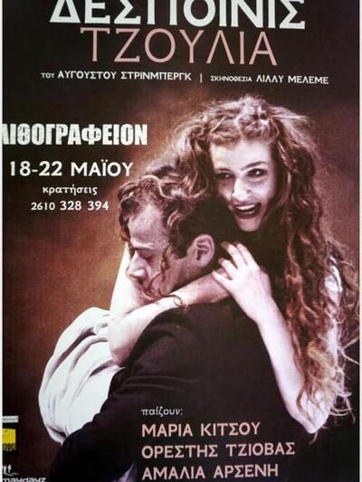 Μια παράσταση που χειροκρότησαν κοινό και κριτικοί σε Αθήνα και Θεσσαλονίκη, το πασίγνωστο, ερωτικό και ψυχαναλυτικό έργο του Αύγουστου Στρίντμπεργκ με τη σκηνοθετική σφραγίδα της Λίλυς Μελεμέ. Η αιώνια μάχη των δυο φύλων, η δίψα της εξουσίας και του πόθου είναι από τα βασικά θέματα που θίγει το έργο.